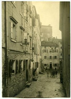 Principio (imbocco) del vicolo S. Chiara, visto dall'Androna della Piccola Fornace