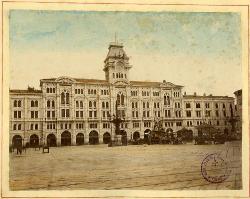 Piazza dell'Unità d'Italia: palazzo comunale e pili portabandiera