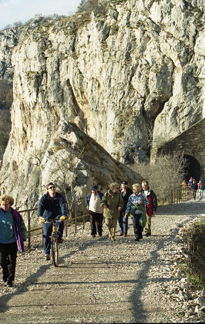Fiera di Trieste: convegno economia (02/02/01). Esterni palazzo della provincia, piazza Vittorio Veneto. Pista ciclopedonale Val Rosandra, Marino Macchi, ciclisti. Grandi motori Wartsila, panoramica. Vecchia ferrovia Val Rosandra.