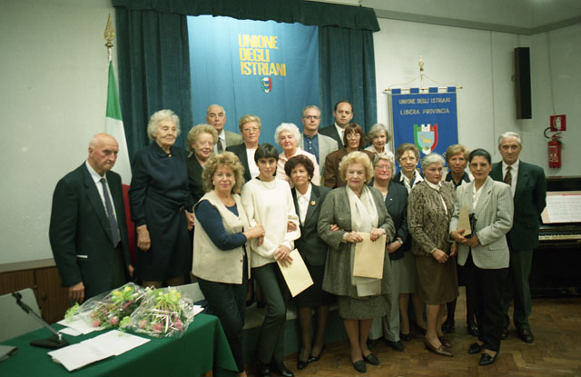 Unione istriani. Code, file gente. Comune. Lloyd triestino. Evergreen. Platea teatro Verdi, militari, fanteria.