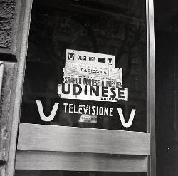 Calcio: vetrina del bar Preti su Triestina - Udinese