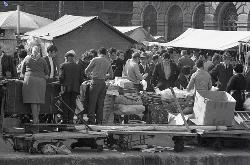 Pullman di acquirenti jugoslavi sulle rive e vicino alla Pescheria (vedute dall'alto)
