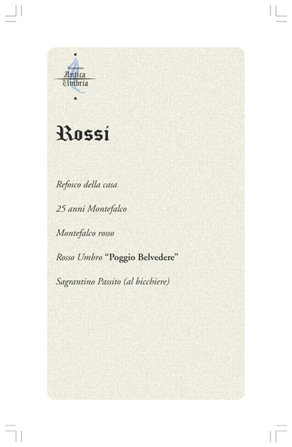 Ristorante antica Umbria, menù lista vini.