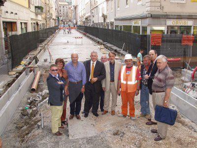 L'Assessore Rossi nel cantiere per la ripavimentazione di via San Lazzaro : sopralluogo : Trieste : 2002