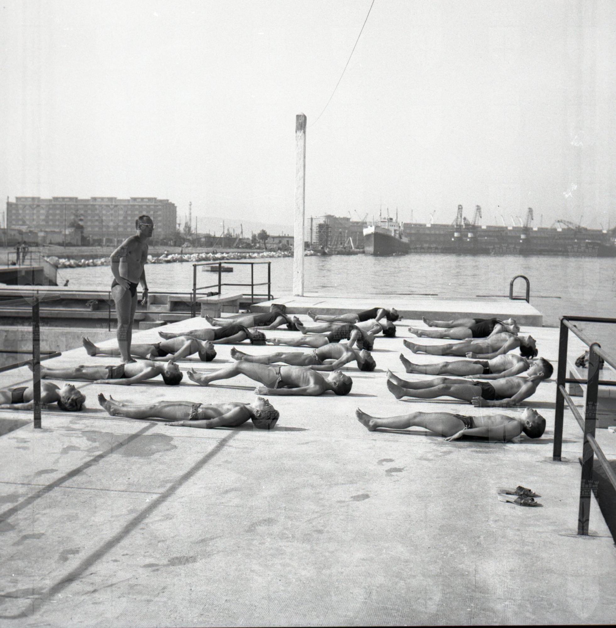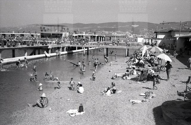 Anni 1960/'70 Bagnanti Lanterna e Ausonia e barca Gabbiano pulisce mare