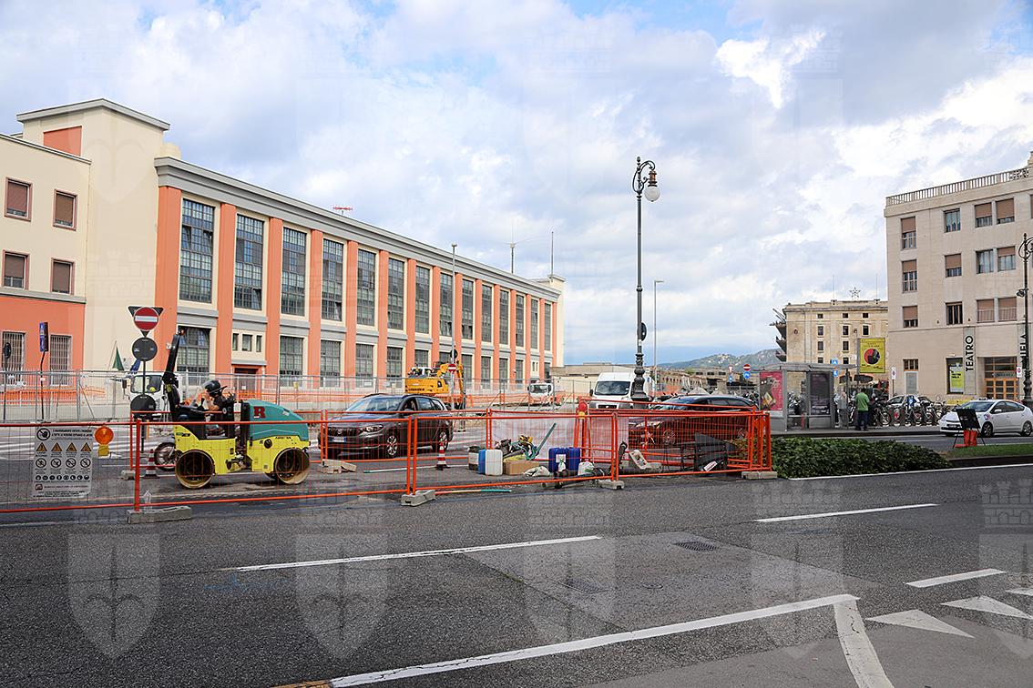 Demolizione dello spartitraffico in Riva Tre Novembre