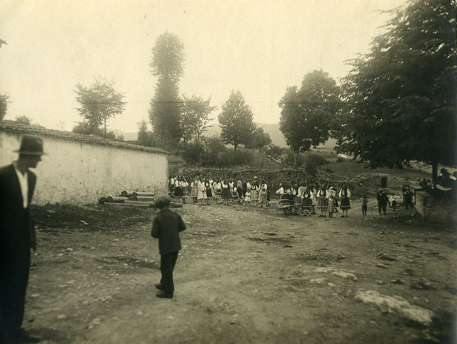Popolazione in costume davanti alla Chiesa