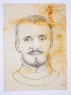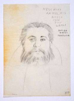 Il gioco dei potenti, da Enrico VI di William Shakespeare. Ritratto di volto maschile con copricapo.