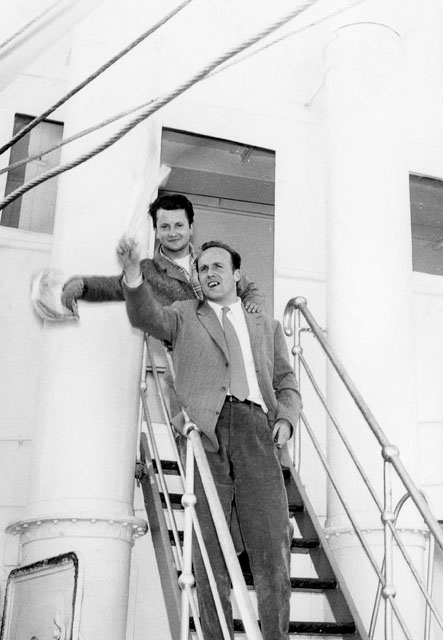 Borsatti con Marcello Bari sulla scaletta di una nave