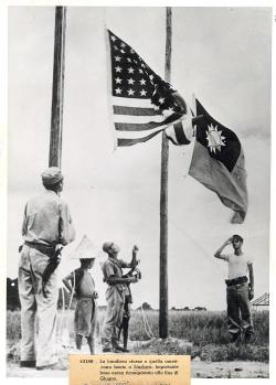 U.S. and chinese flags rised in victory over Liuchow