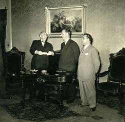 11 dicembre 1952 ; Il Sindaco di Trieste, dr ing. Gianni Bartoli, riceve in Municipio il senatore degli Stati Uniti d'America John KENNEDY