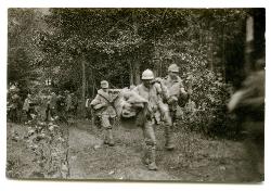 I feriti del reggimento vengono trasportati al primo soccorso : Battaglia di Oituz : 9 agosto 1917