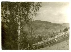 Vista, dalla finestra della mia camera, del posto di comando del 12. Reggimento Ulani : Valle Domokpatak (Puntea Lupului) : 20 maggio 1917