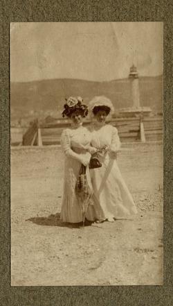 Elisa Finazer Milcovich con un'amica : vicino alla Lanterna
