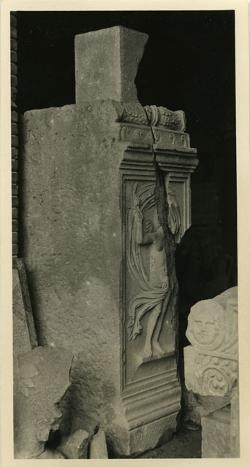 Trieste, Orto Lapidario : frammenti architettonici di monumento funerario romano (da dis. di Laura Loseri)