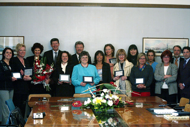 Provincia di Trieste, visita delegazione "Giuliani nel mondo". Galletto premia universitari circolo ufficiali. Drabeni ritratti. Drabeni conferenza stampa, Barriere architettoniche.