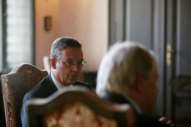 Sterle/ Provincia: Scoccimarro, visita di Giorgio Albertazzi all'ufficio Expo, piazza Galatti.