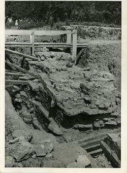 Trieste, Museo di Storia ed Arte : area archeologica, scavi giugno-luglio 1962, il muraglione romano visto dalla cinta di via San Giusto