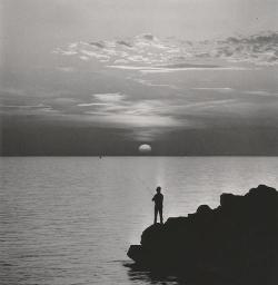 Pescatore al tramonto dalla scogliera di Barcola