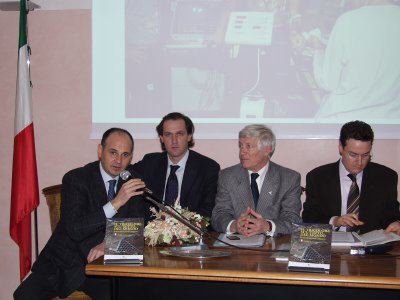Roberto Dipiazza sindaco e Roberto Menia assessore alla conferenza stampa sulla "Porta della Pace" : Trieste : 2002