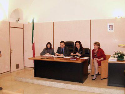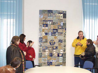 Un gruppo di giovani disabili dona al Comune un pannello in maiolica intitolato "Fondali Marini" : conferenza stampa : Trieste : 2003