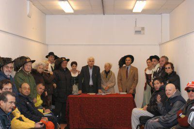 Il collezionista Pietro Covre riceve il sigillo trecentesco della Città di Trieste in occasione dell'inaugurazione della mostra I Marenzi, una famiglia triestina dall'archivio di Pietro Covre : Trieste : 2003
