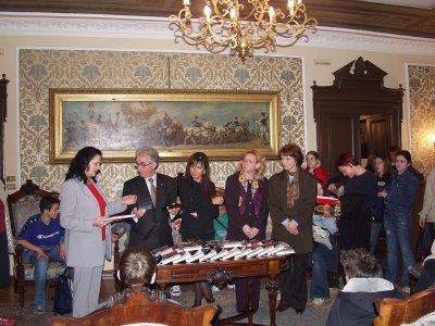 Angela Brandi assessore presenta l'iniziativa "Impariamo giocando" in collaborazione con la Croce Rossa Italiana : Trieste : 2002