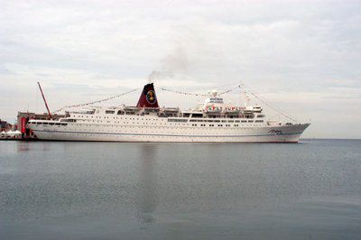 Cerimonia e incontro stampa sulla nave da crociera Emerald per l'inizio della stagione crocieristica 2005 : presente l'assessore Maurizio Bucci : Trieste 2005