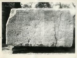 Trieste, Orto Lapidario : fianco del basamento di Fabio Severo con il testo del verbale della seduta del Municipio di Trieste per l'onoranza al senatore