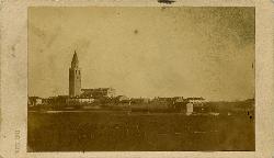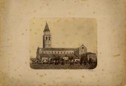 Aquileia. Stalla Moschettini (demolita) con lapidi e sculture romane sulle facciate