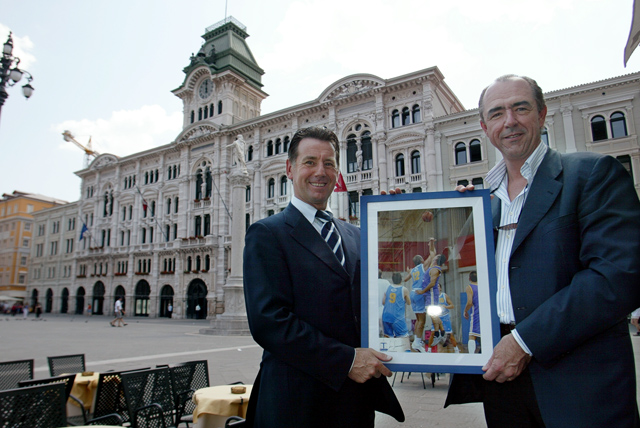 Provincia di Trieste, presidente Scoccimarro, visita onorevole Riccardo Illy. Partita di pallacanestro provincia, comune, Cavaliero.