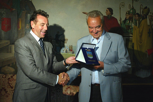 Provincia di Trieste, presidente Scoccimarro, consegna sigillo giornalista de Il Piccolo, Pietro Spirito.