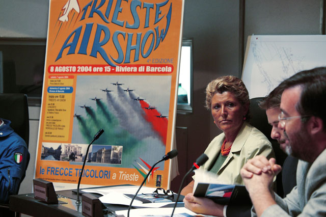 Provincia: Air show 2004, Scoccimarro, Vivarelli, Menia, Dipiazza, frecce tricolori, Sigliano con moglie, Tito Rocco con moglie, Rossella Gerbini, frecce francesi, console francese Leggieri, fuochi d'artificio, Ponterosso.
