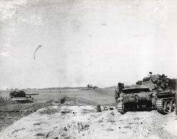 Fallingbostel, 14 aprile 1945, il caporale Guido Sinopoli del commando italiano, accanto a un carro armato dei liberatori