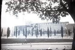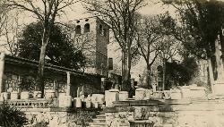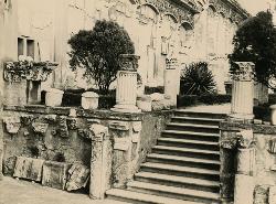 Trieste, Lapidario : veduta del III ripiano con in fondo la Basilica di S. Giusto