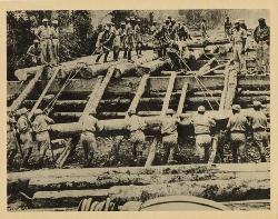 Genieri cinesi costruiscono un ponte con dei tronchi