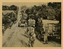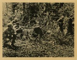 American troops hug the side of a building in Dinard as they advance through the streets under fire from German snipers.