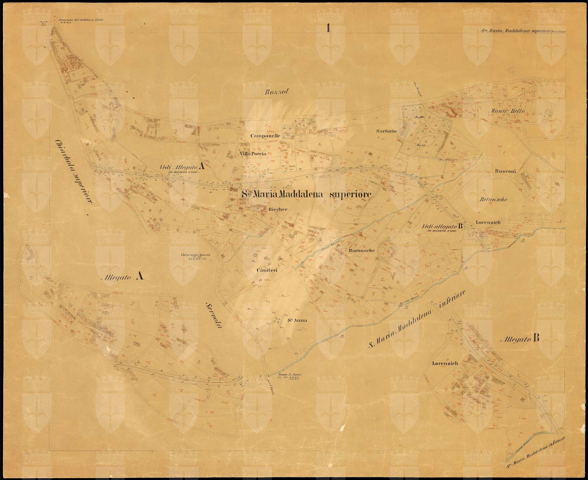 Santa Maria Maddalena Superiore nel Litorale Territorio di Trieste : distretto steorale di Trieste : litografato nell'i.r. Istituto litografico del Catasto secondo lo stato dell'anno 1889