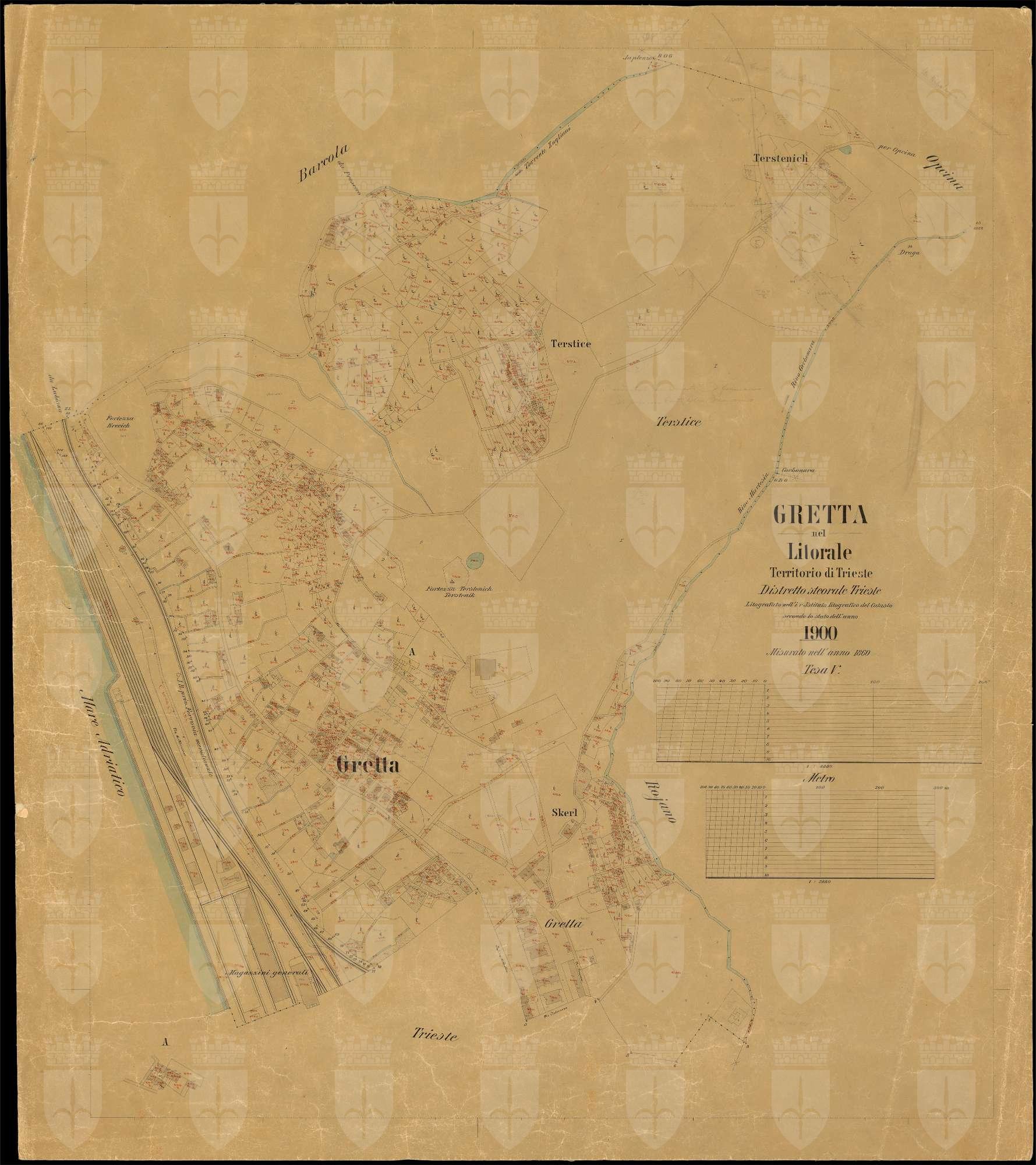 Gretta nel Litorale Territorio di Trieste : distretto steorale di Trieste : litografato nell'i.r. Istituto litografico del Catasto secondo lo stato dell'anno 1900 misurato nell'anno 1860