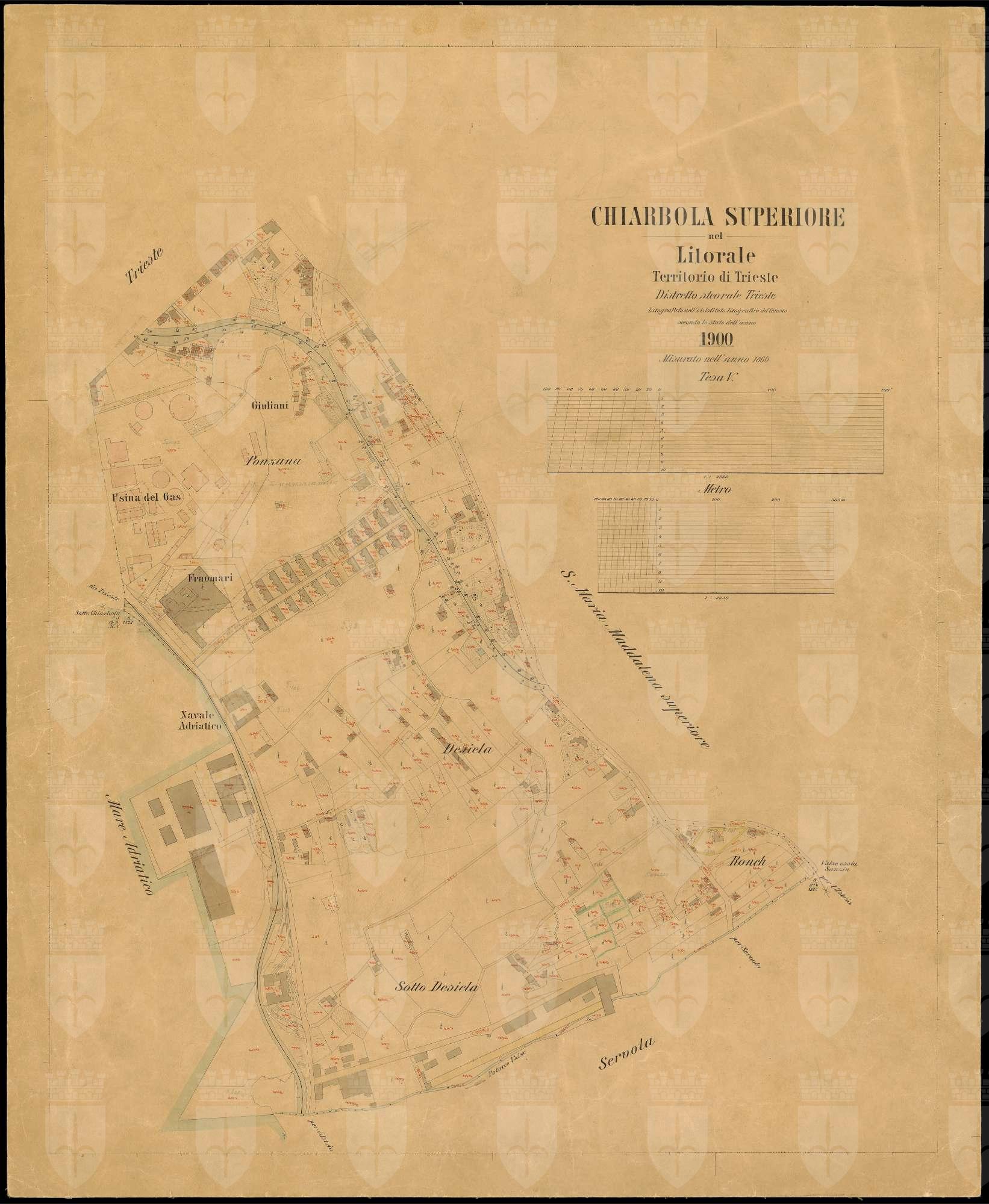 Chiarbola Superiore nel Litorale territorio di Trieste : distretto steorale di Trieste : litografato nell'i.r. Istituto litografico del Catasto secondo lo stato dell'anno 1900, misurato nell'anno 1860