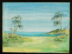 Fiore d'Haway, operetta, musica di Paul Abraham. Fondale per 1. e 2. atto, paesaggio costiero