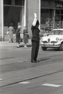 Vigile dirige traffico in corso Italia