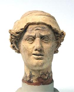 Testa maschile imberbe in terracotta