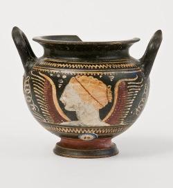 Skyphos siceliota a figure rosse con teste femminili