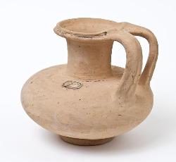 Kylix apula a figure rosse. Interno: donna seduta. Lato A e B: testa femminile