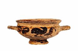 Coppa biansata miniaturistica apula a figure rosse. Lato A e B: civetta
