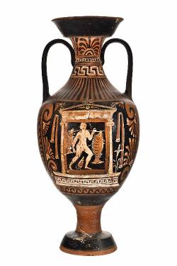 Anfora nolana attica a figure rosse con anziano che istruisce un giovane