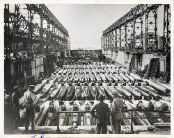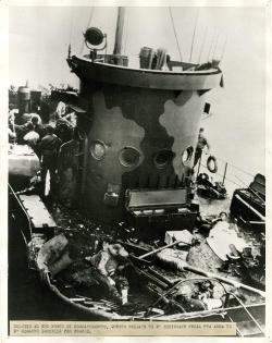 Ufficiali della Marina americana ispezionano i sottomarini tascabili giapponesi