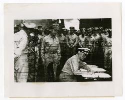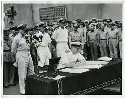 U. S. Fleet Admiral Numitz signs japanese surrender document for U. S.