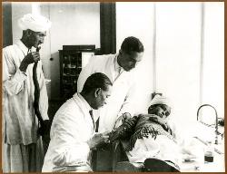 Esame dei figli degli operai nella clinica di un grande cotonificio nell'India meridionale